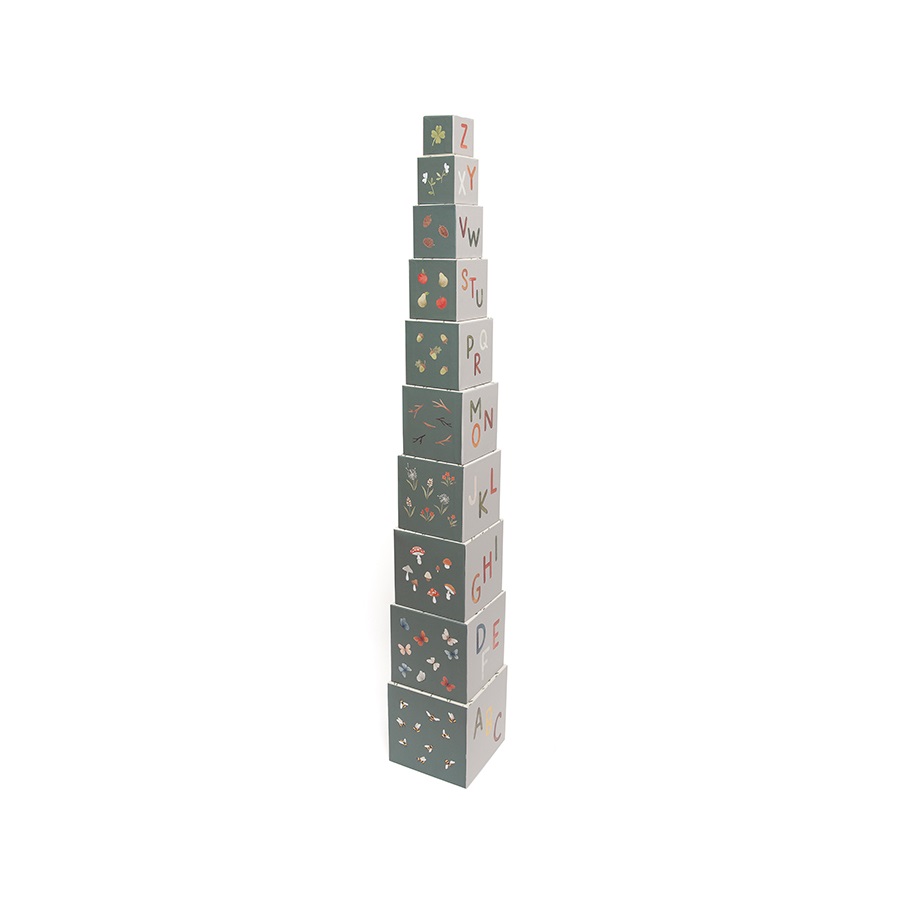 Sustatykite kaladėles vertikaliai, kad pastatytumėte aukštą bokštą (pastačius visas kaladėles išeina 89 cm statunys), arba išdėstykite horizontaliai nuo dydžiausio iki mažiausio. Kubai patogiai susideda vienas į kitą. Kubai pagaminti iš tvirto kartono ir atsparūs smūgiams. Mažiausias kubas yra 4.5 cm, o didžiausias – 13.5 cm.