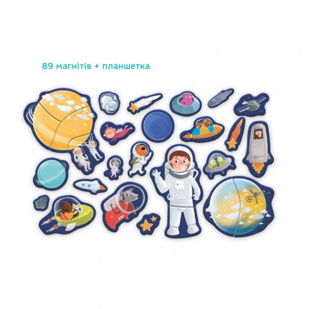 Sit the 89 magnetic pieces on the magnetic board and learn the name of the planets, their different sizes, etc. This magnetic game is ideal for expanding knowledge and language about the solar system and the world of astronauts.