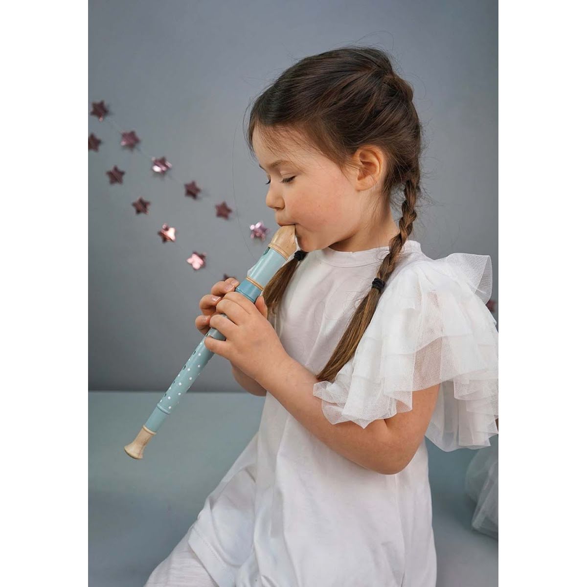 Recorder with several cool blue shades. Learn to play simple tunes at the same time as learning how the different notes sound. The recorder has 7 holes on the upper side that make different sounds.