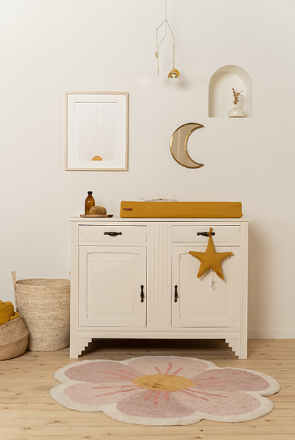Rooms that bloom. This imaginative rug in the shape of a dainty flower adds warmth and comfort into your child’s special place. Colourful and cosy, it will be the centrepiece of any kids’ room or nursery. With a size of 110 cm x 110 cm it easily fits even the smallest of spaces. Maintain the cheerful mood by styling it with coordinating items from our Flowers & Butterflies collection.