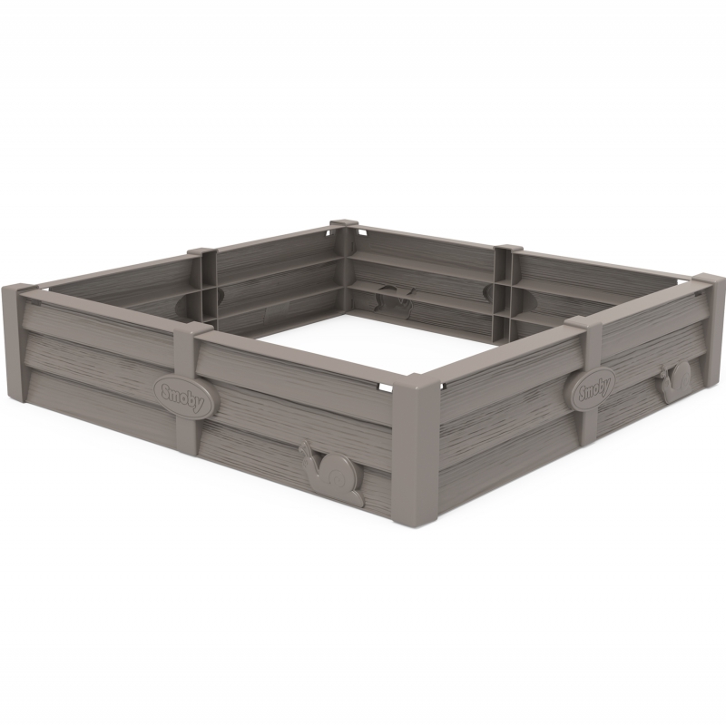 The Smoby 2-in-1 Square Sandbox + Flowerbed offers two great play options! The sandbox can be set up very easily, because you only need to fold the four side walls to fold it. Fits perfectly with all Smoby playhouses . What is especially great is that children can use the product not only as a sandbox , but also as a vegetable garden – this way they can explore the world of gardening. The toy holds 100 kg of sand or 70 liters of soil . Made of 100% recycled plastic. All for use by children from 2 years .