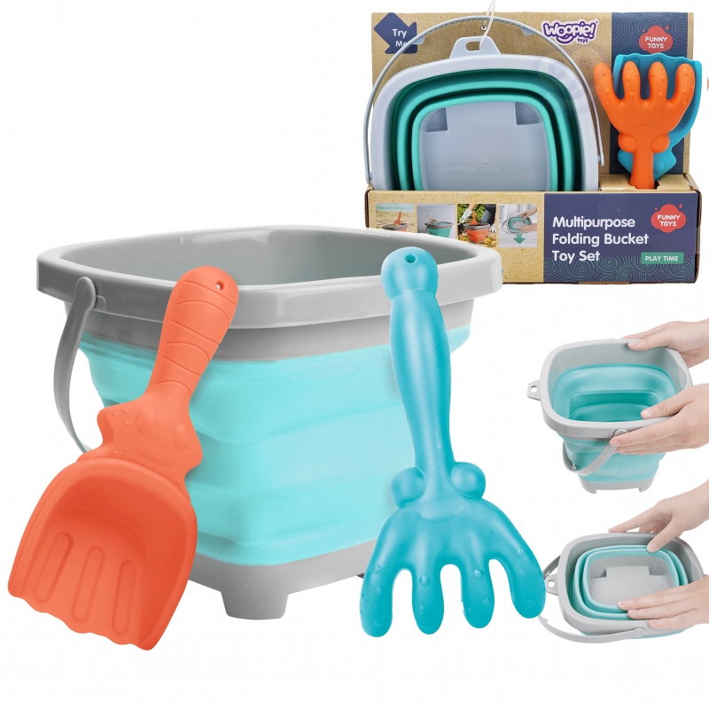 Tai bent smėlio žaislų rinkinys! Kad neužimtų daug vietos, kibirėlį patogiai galima net sulankstyti! Vežkitės jį į kelionę ar patogiai neškit į smėlio dėžę žaisti.