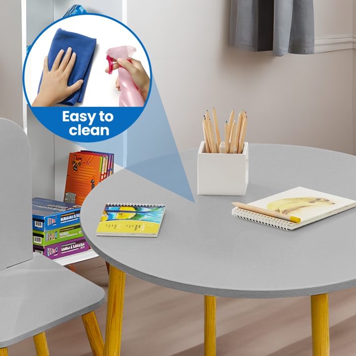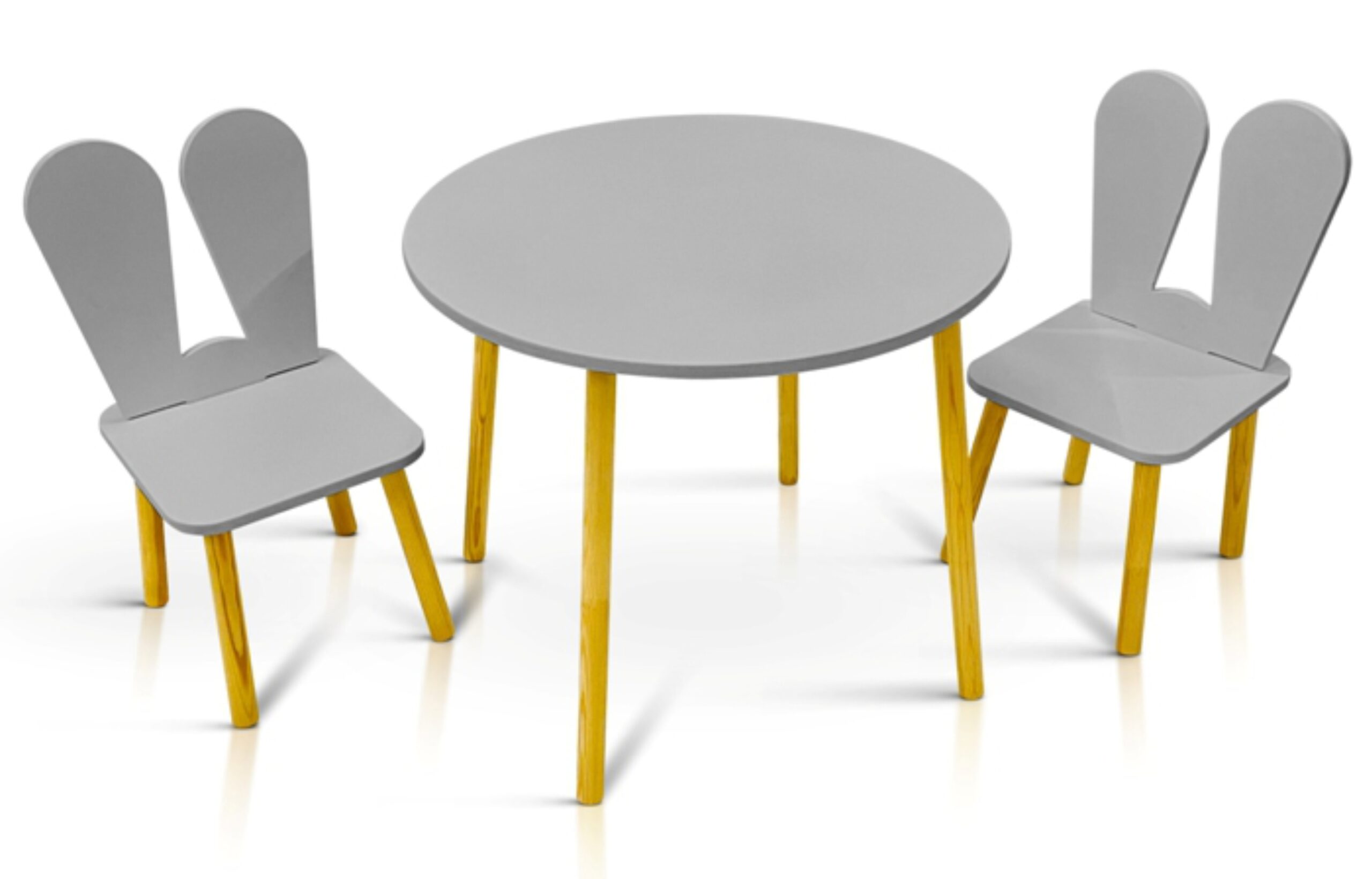 Kokybiški, tvirti baldai vaikams. Rinkinį sudaro staliukas ir dvi žaismingos kėdutės, kurių atlošas imituoja zuikio ausytes. Baldai pritaikyti mažiems vaikams. Prie staliuko vaikai galės smagiai žaisti, piešti ar skaityti knygeles. Šie baldai taps tikra kambario puošmena.