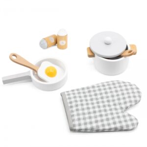 - Mediniai vaikiški puodai ir įrankiai balti, Viga Kaina: 26.00€ su PVM