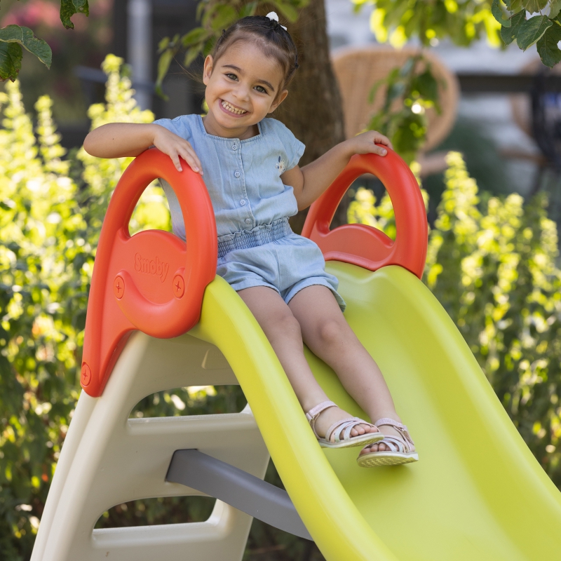 Smoby – Prancūzų prekės ženklas didelį dėmesį teikia saugumui, todėl ir šioje čiuožykloje padaryti neslystantys laiptai, ergonomiškos rankenos ir net šoniniai borteliai. Ją lengva prižiūrėti, paviršius atsparus UV spinduliams.