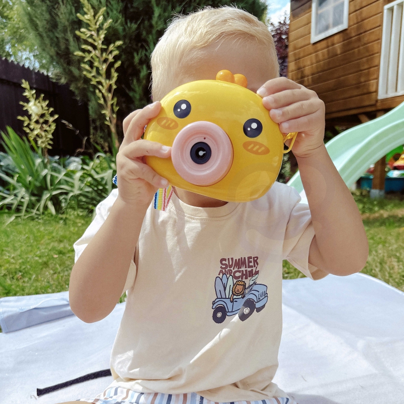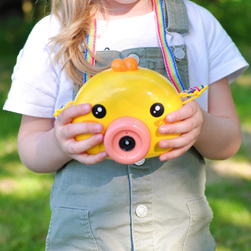 Neįsivaizduoju vasaros be muilų burbulų! Su šiuo žaismingu, interaktyviu muilo burbulų leidimo ančiuku bus taip smagu lakstyti lauke, ieškoti nuotykių ir, žinoma, gaudyti muilo burbulus. Tereikia paspausti mygtuką, pasigirs švelni muzika, o burbulai pradės pūstis. Dėka mini ventiliatoriaus muilo burbulai greitai kils į viršų, kas suteiks daug juoko ir šypsenos mažylio veide. Rinkinyje yra dirželis. Muilo burbulų skysčio nėra. Reikalingos baterijos AA baterija 3×1,5 V.