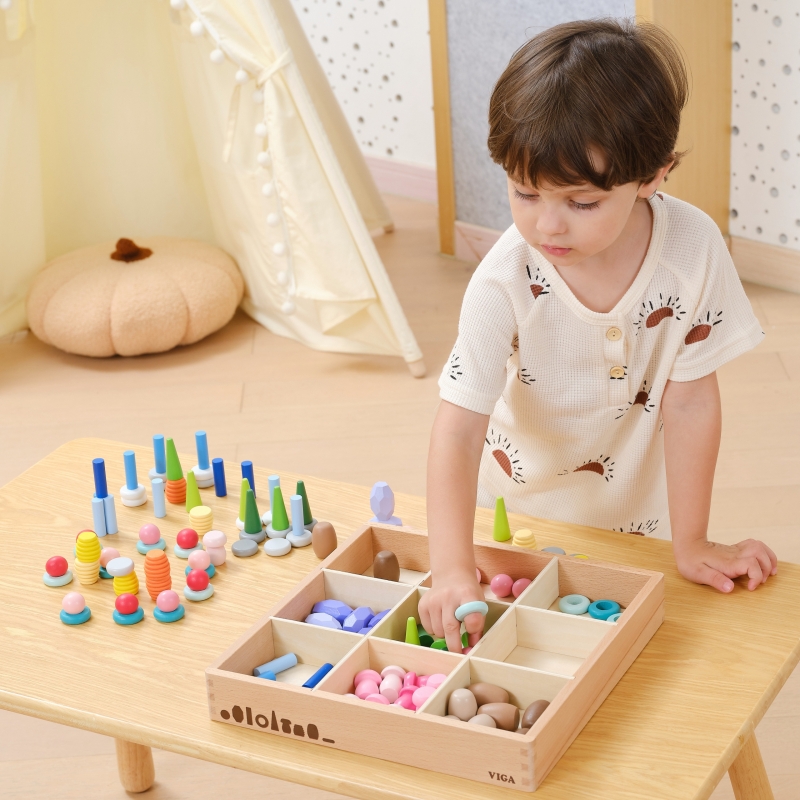 VIGA medinių kaladėlių figūrų rinkinys! Rinkinį sudaro 58 elementai skirtingų spalvų ir formų figūros. Kaladėlės lavina smulkiąją motoriką, kūrybiškumą, susikaupimą. . Po žaidimo visos detalės patogiai susideda į medinę dėžutę. Žaislas tinkamas žaisti tiek namuose, tiek ugdymo įstaigoje.