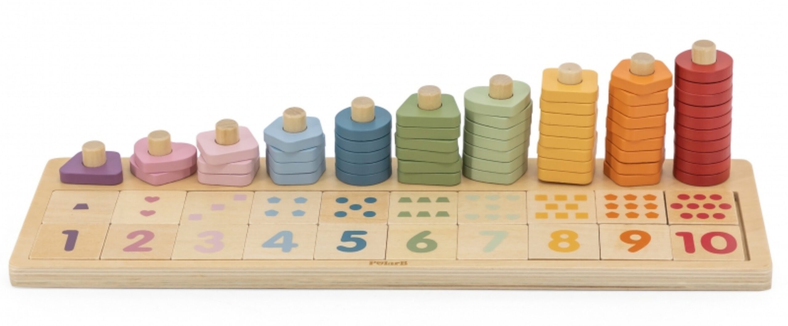 Pagrindą sudaro skaičiai nuo 1 iki 10, skirtingų formų ir spalvų vėrimo detalės, kaladėlės su skaičiais. Mokykis skaičiuoti, pažinti spalvas, lavink akių rankų koordinacija. 1 žaislas, o galimybių juo žaisti 100!