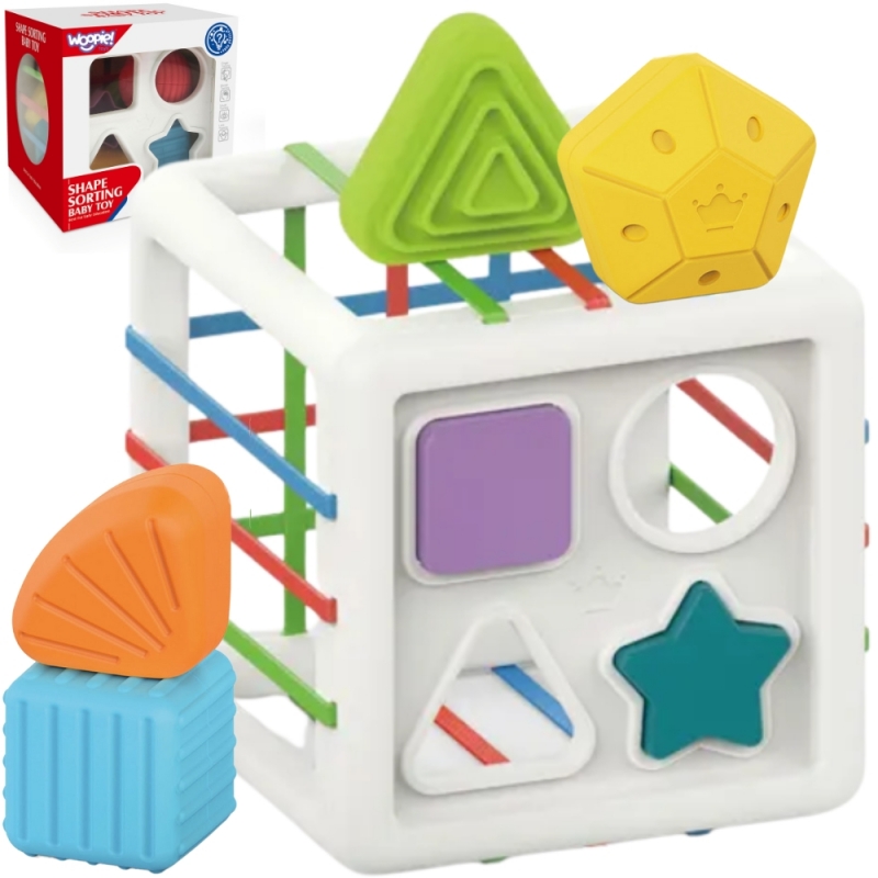 Sensorinis lavinamasis žaislas jūsų mažylių ugdymui. Žaislas 1, o galimybių žaisti juo 100! Patiems mažiausiems bus smalsu pro gumines elastines virveles įdėti ar išimti figūrėlę. Vyresni vaikai jau gali šiuo žaislu žaisti, kaip formų rūšiuokle. Sugebėti atpažinti formą ir teisingai įdėti figūrėlę. Vėliau galima smagiai mokytis spalvų, formų.Puikus pasirinkimas 1ojo gimtadienio proga padovanoti.
