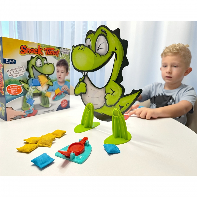 Žaidėjai varžosi tarpusavyje, bandydami katapultos pagalba permesti maišelius į krokodilo burną. Tai ne tik smagus, bet ir įgūdžių reikalaujantis žaidimas, lavinantis judesių koordinaciją, taiklumą ir reakciją.