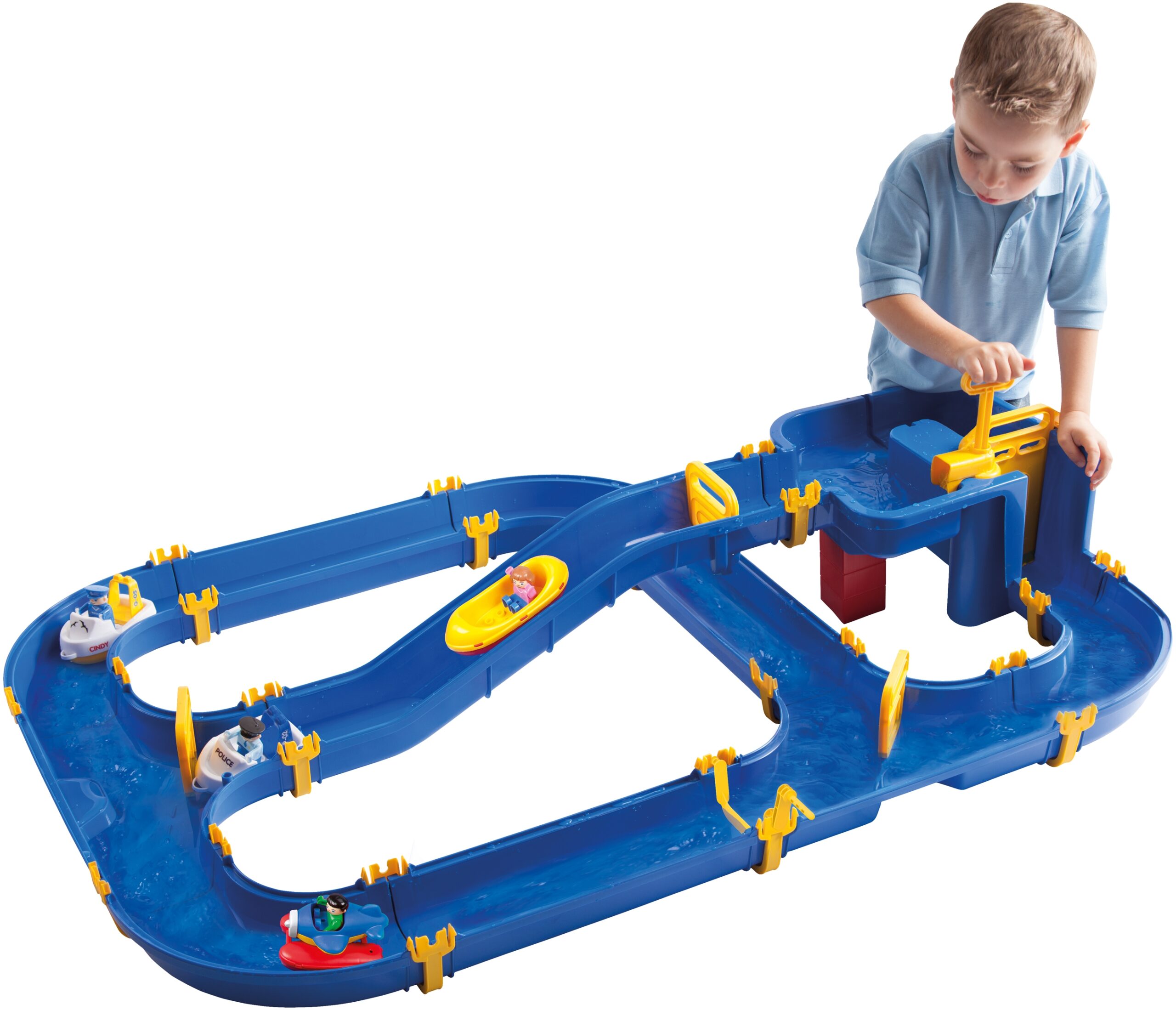 Tai bent vandens trasa! Ja smagu žaisti tiek vienam, tiek su draugais. Rinkinyje yra žmonių figūrėlės, laiveliai. Tau tereikia įjungti vandenį ir leistis į nuotykius. Puikiai tinkama žaisti lauke. Tobula dovana kiekvienam vaikui! Lengvas surinkimas.